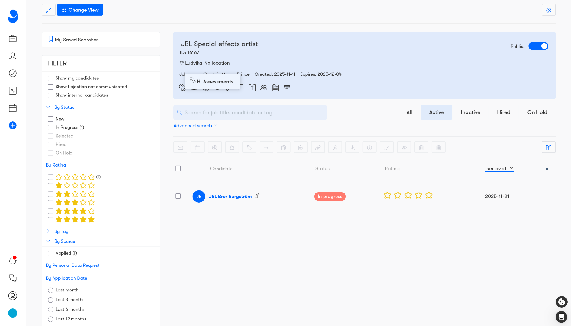 Section titled “Step 3: Configure HI Assessments for Your Job”- In Jobylon, open the job where you want to add assessments